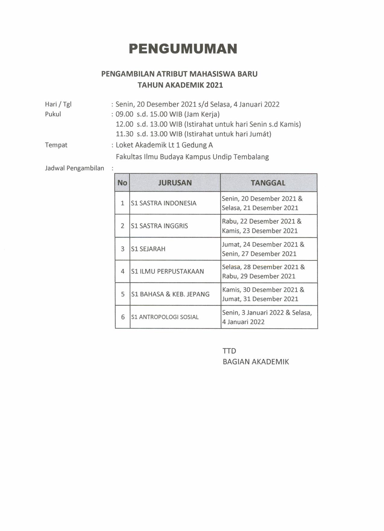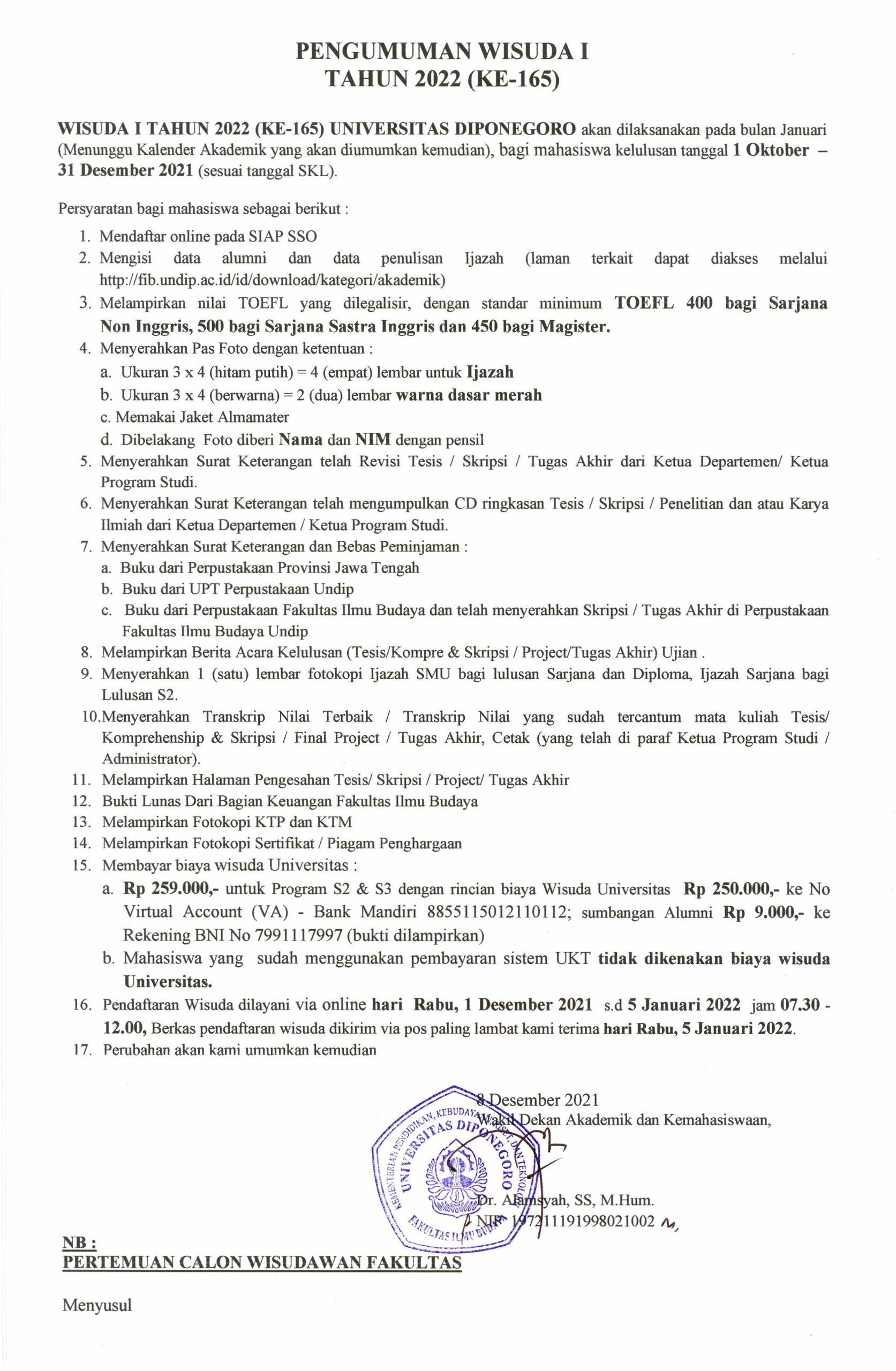 As a follow-up to the letter from the Vice Chancellor for Academic & Student Affairs of Diponegoro University Number 7965/UN7.P1/KM/2021 dated November 10, 2021 regarding