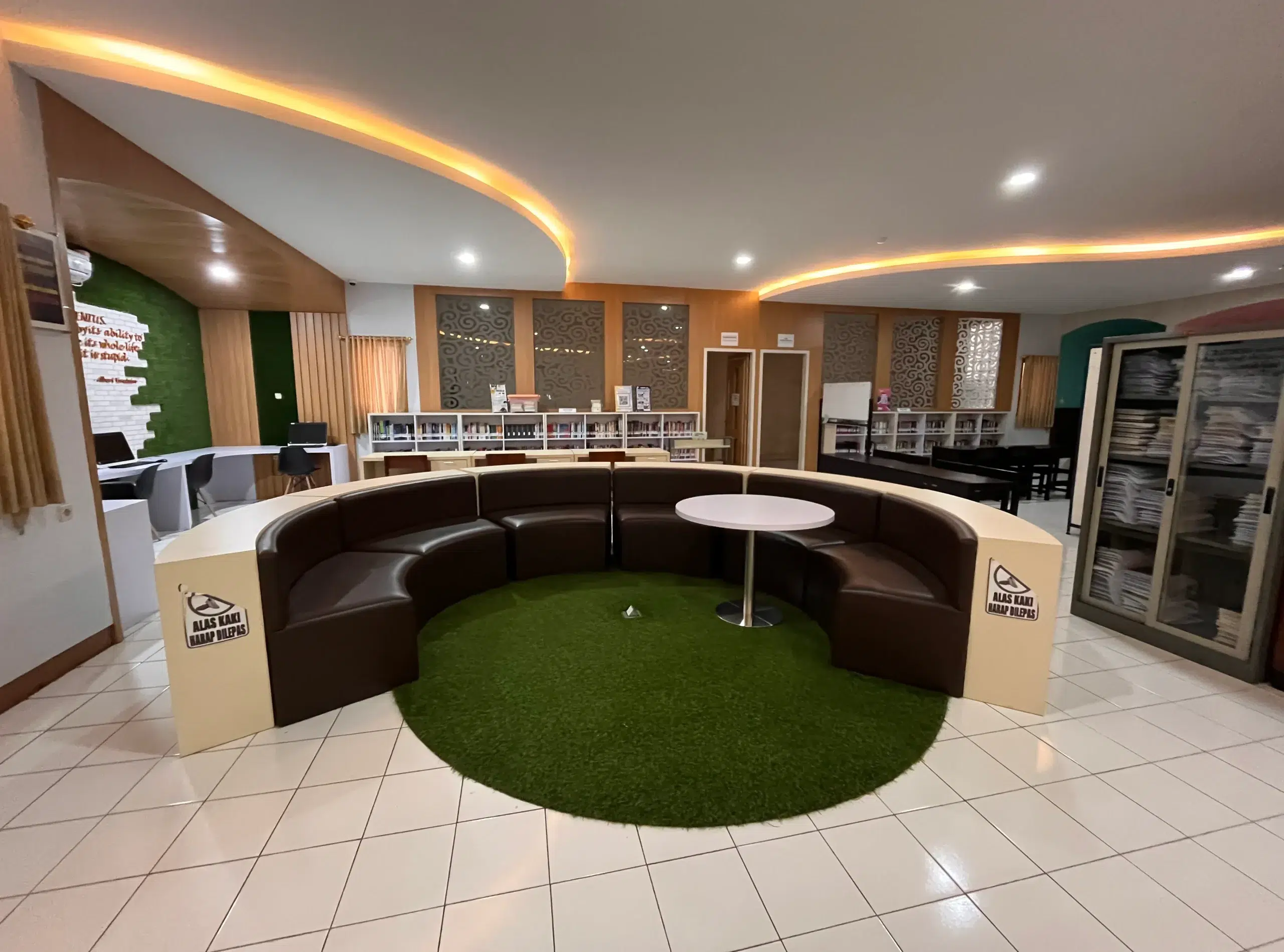Area Co-Working Space merupakan area kerja mahasiswa yang dapat dimanfaatkan untuk berkumpulnya mahasiswa membahas terkait perkuliahan maupun pembahasan lainnya.